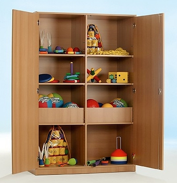 Robuuste opbergkast voor sportartikelen met een veelvoud aan vakken en opbergruimten, maten B/H/D: 150 x 190 x 50 cm Wordt geleverd met de inhoud van Box 1, Box 2 en Box 3!.