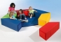 Set Knuffelbloem Deze zeldzame bloem bestaat uit 6 trapeziumvormige elementen in verschillende kleuren. Ideaal als rustpunt, speel-, lees- of voorleeshoekje. Eventueel kan u dmv drie extra bodemmatten ook een prettige turn en speeloppervlakte maken. Stevige buitenhoezen in kunstleder-afwasbaar. Door de voorziene klittenband aan de korte uiteinden van ieder element kunnen de stukken naar wens aan elkaar bevestigd worden. Stof P2.